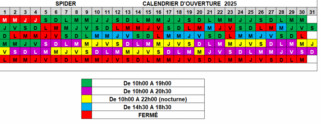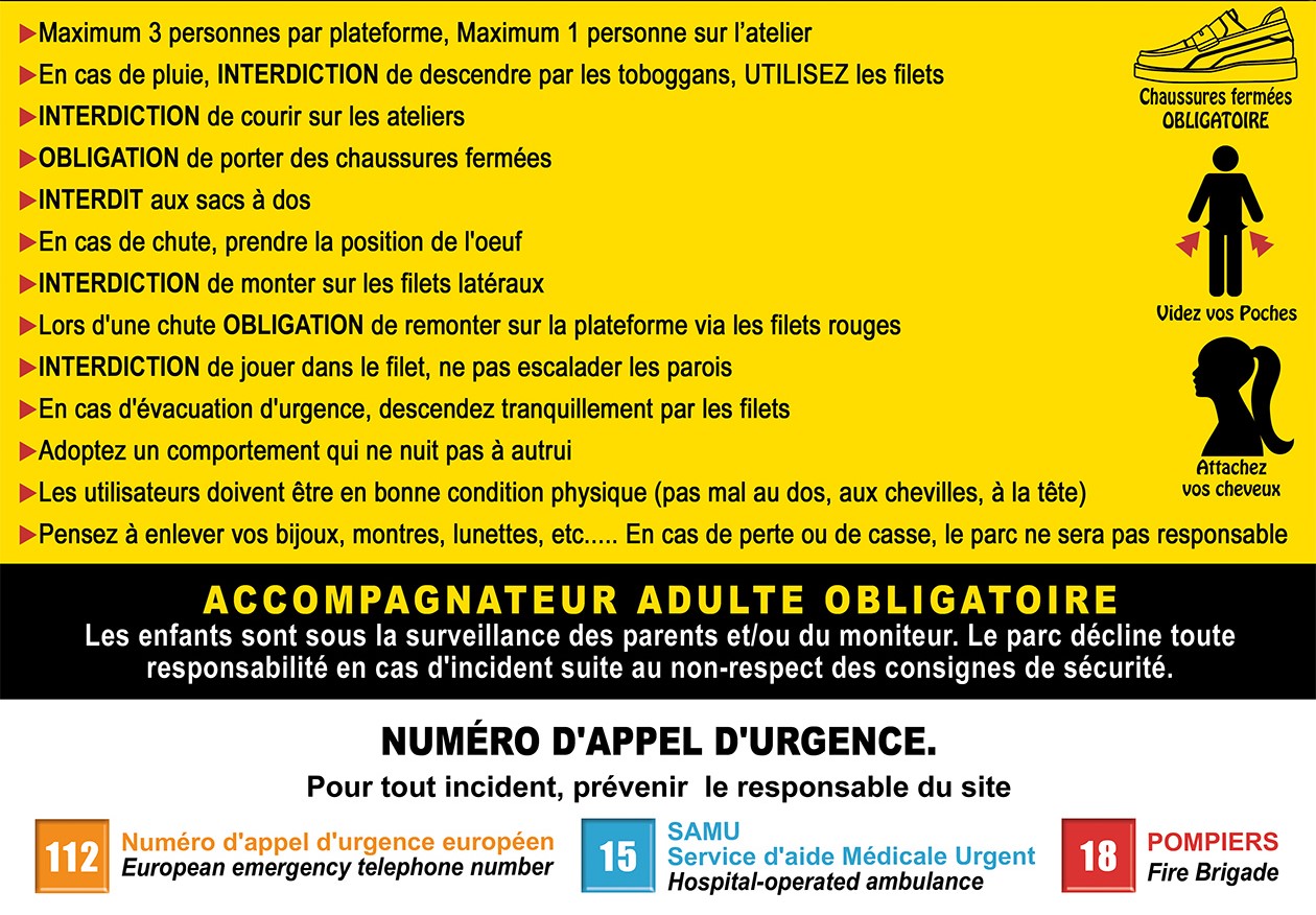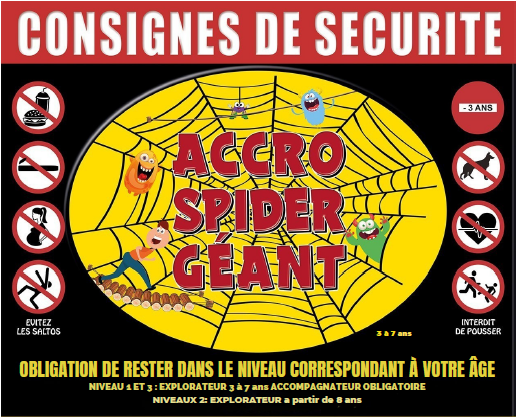 Village des hobbits( niv 3) et accro spider kids( niv 1) : à partir de 3 ans (accompagnateur obligatoire et payant jusqu’à 7 ans) Accro spider adulte ( niv 2) : à partir de 8 ans